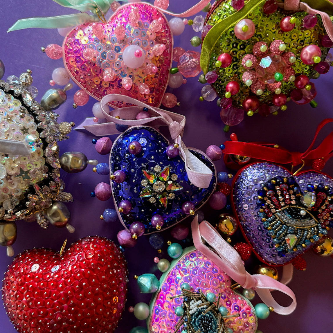 Join us for an evening of cocktails and creativity. Libby will bring her her treasure trove of sequins, ribbons and vintage lace and passementerie and all you need to make sequined Valentine Heart ornament.